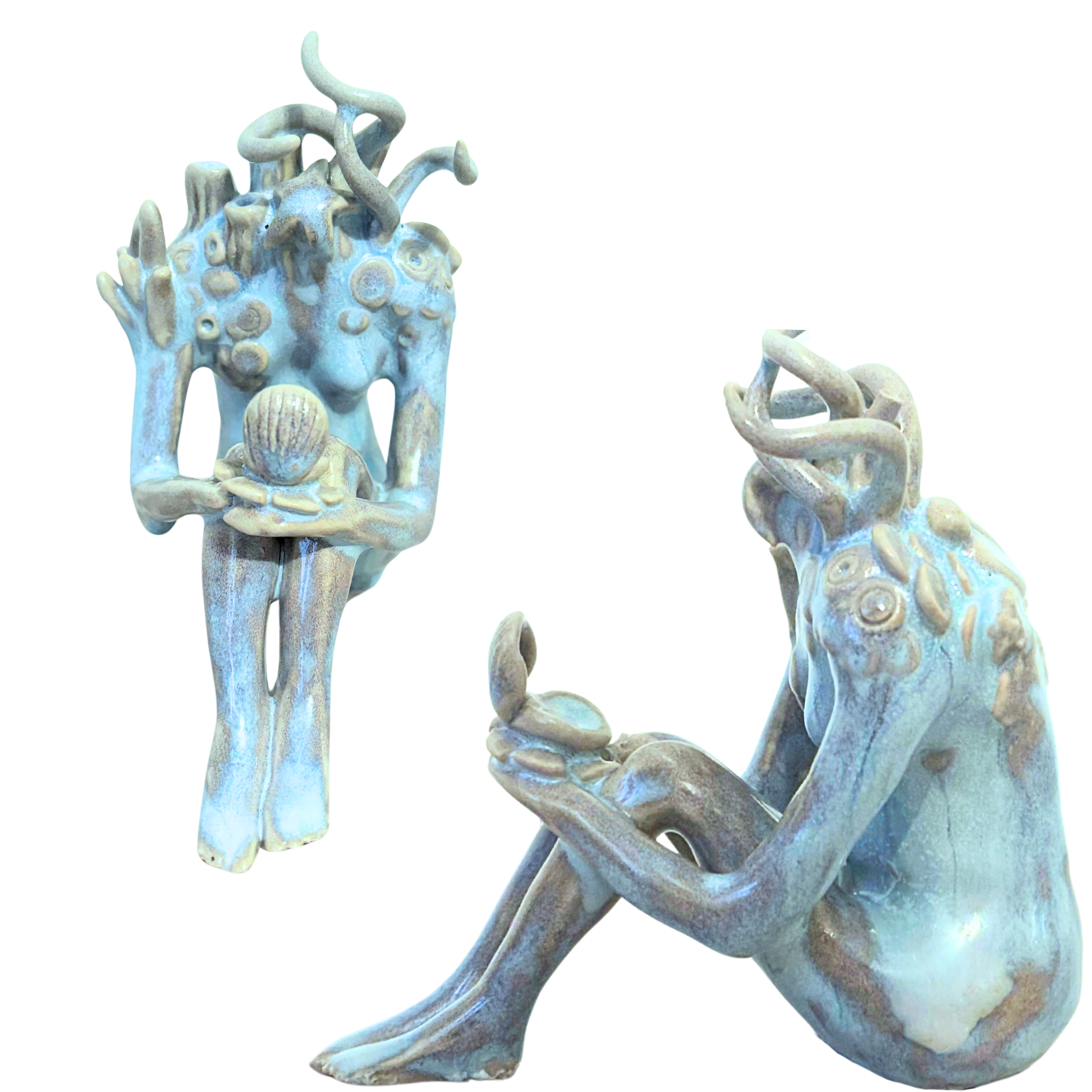This ceramic series is inspired by the concepts of eudaimonia and biophilia. By integrating organic marine elements, these sculpture explore the connection between our nature and the natural world. Rooted in the Greek origins of these terms—eudaimonia, meaning human flourishing, and biophilia, our instinctive bond with life—the work reflects the harmony between humans and the natural world.
